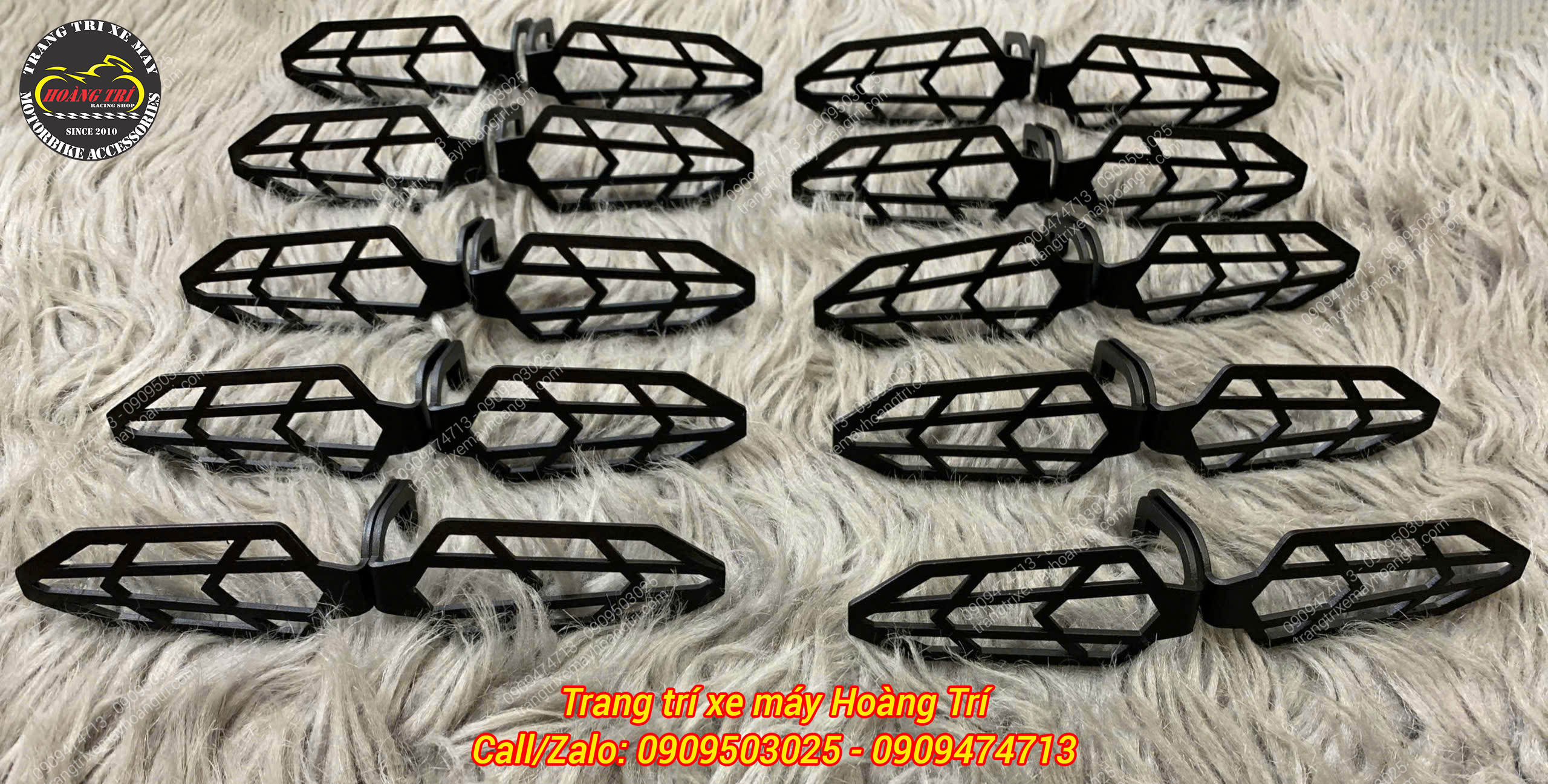 Mẫu bảo vệ đèn xi nhan ADV 150 / ADV 160 được thiết kế theo đúng kích thước và vị trí đèn xi nhan nguyên bản của xe. Nhờ vậy khi lắp đặt, phụ kiện ôm sát vào cụm đèn xi nhan, tạo cảm giác liền lạc và hài hòa với tổng thể thiết kế của xe. Sản phẩm có kiểu dáng dạng khung lưới với các đường cắt góc cạnh rất đặc trưng của phong cách ADV. Nhìn tổng thể, phụ kiện này giúp phần đầu xe trở nên cứng cáp, mạnh mẽ và đậm chất thể thao hơn. Bề mặt sản phẩm được sơn đen giúp dễ dàng kết hợp với nhiều màu xe khác nhau. Khi lắp lên xe, bộ khung bảo vệ này tạo nên điểm nhấn khá ấn tượng nhưng vẫn giữ được sự hài hòa với thiết kế nguyên bản của ADV.