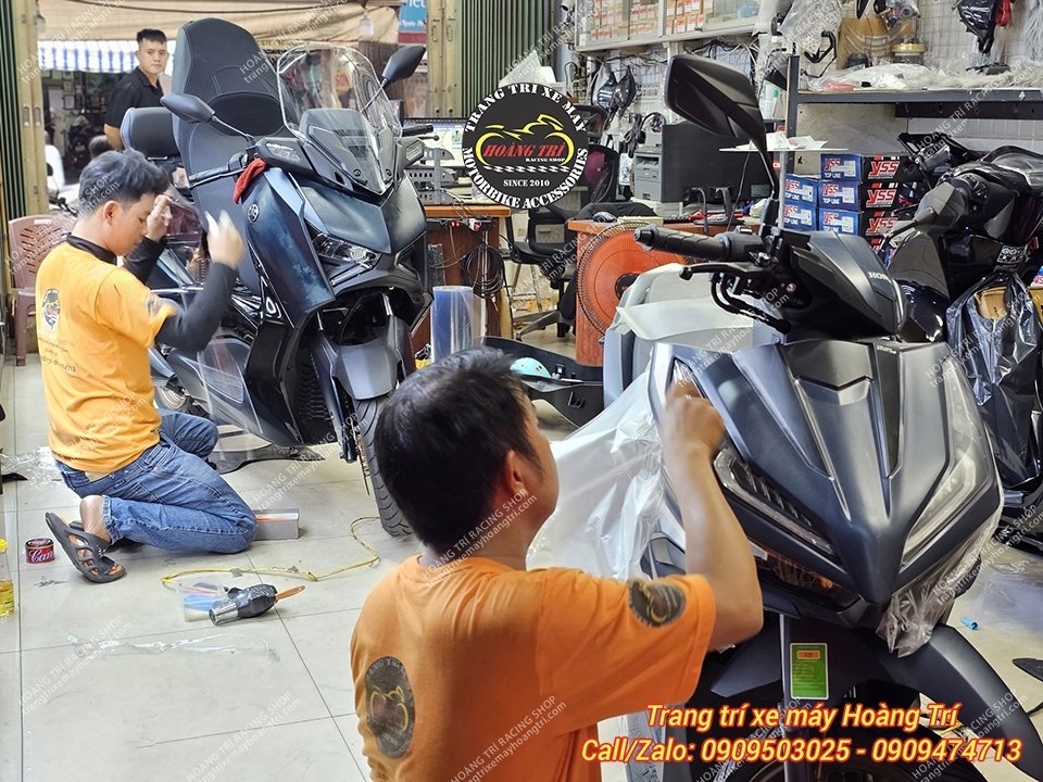 Thêm chiếc XMAX 300 2023 ghé shop dán keo xe (trái)