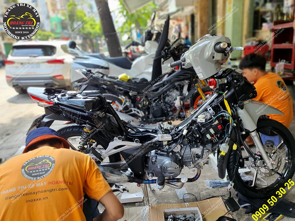 Nhân viên đang lắp đặt các phụ kiện đồ chơi xe Future cho xe