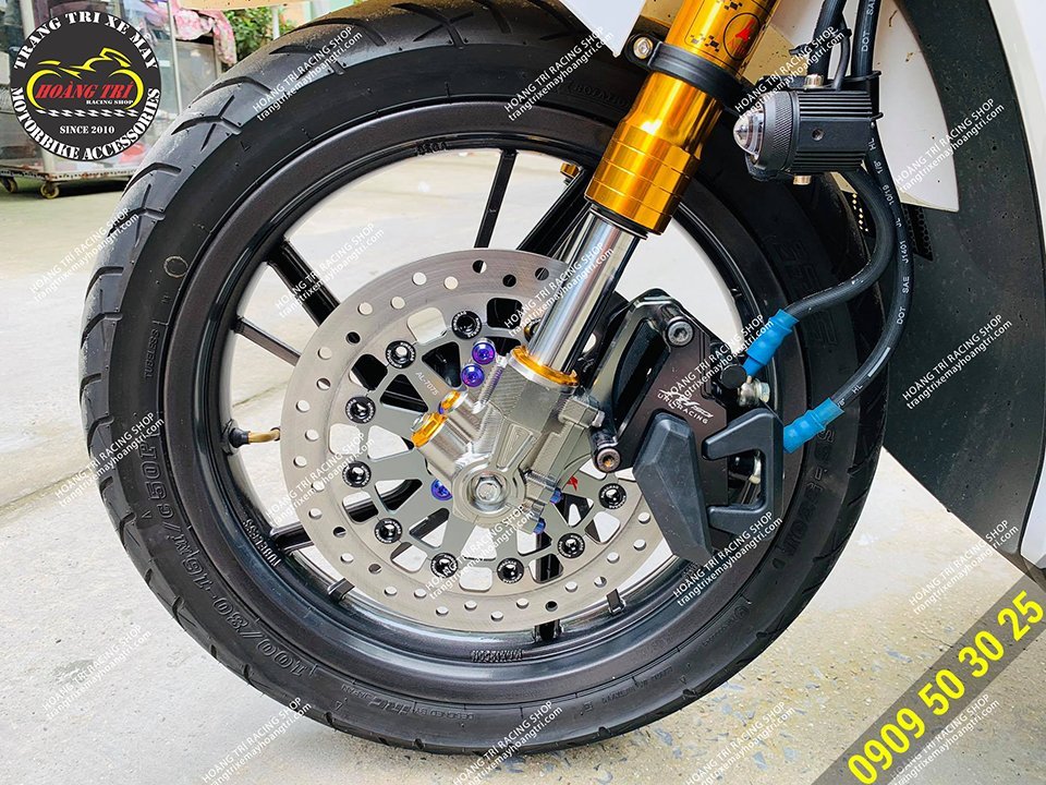 Góc cận cảnh dàn chân trước sau khi trang bị cho xế cưng đồ chơi mới