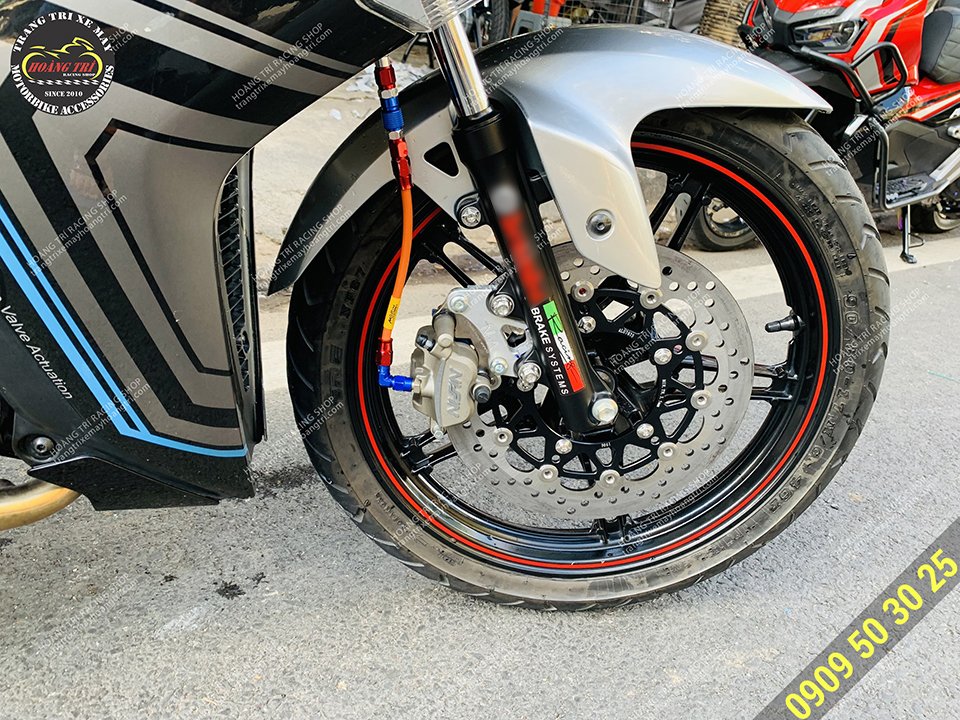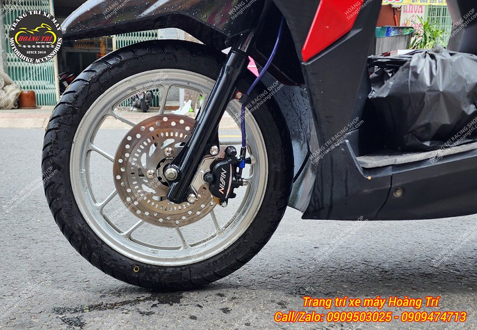 Heo dầu Nissin với màu sắc khác biệt làm bật tông cho dàn chân trước của xe Vario 125
