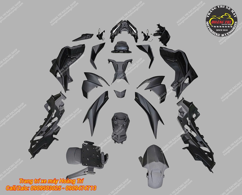 Dàn áo xe đã được sơn đen mờ và chuẩn bị bắt đầu ráp lại cho xe