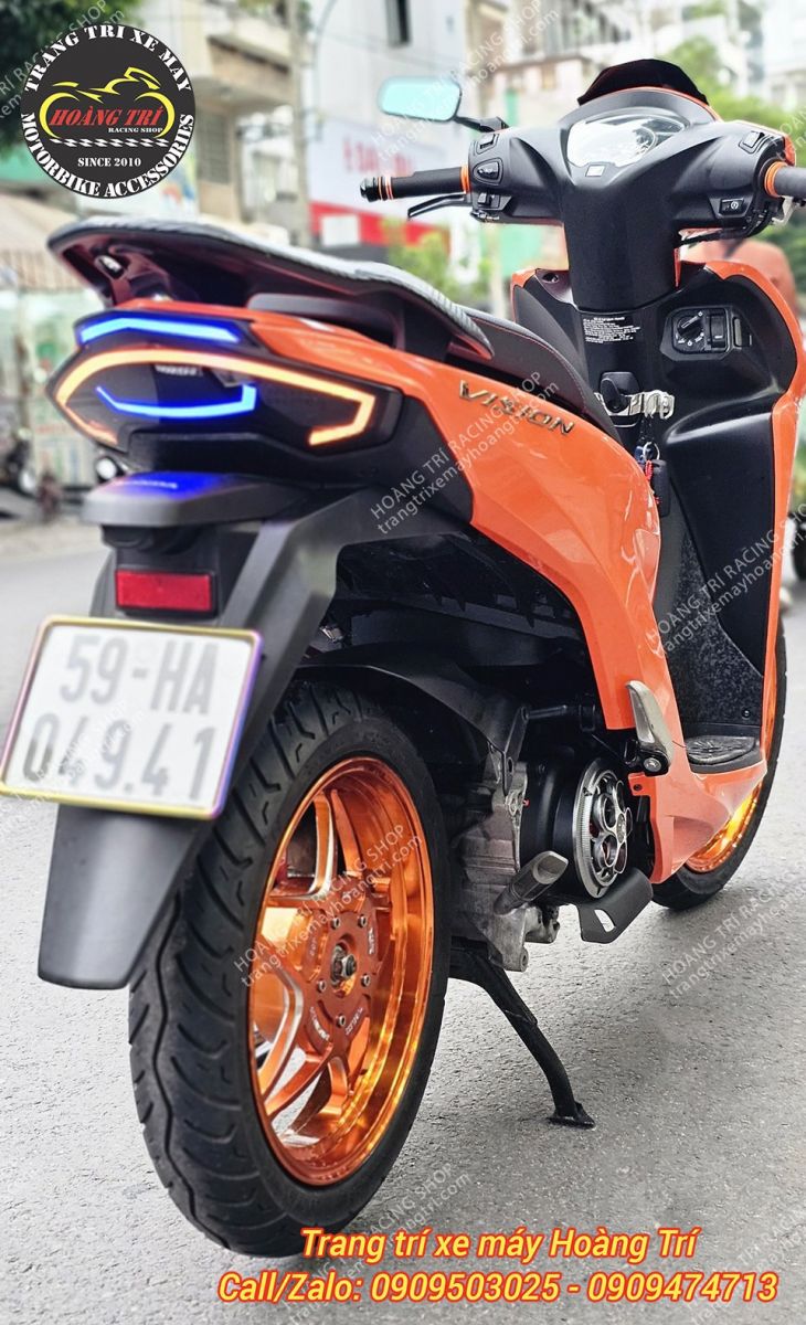 Trên tay mâm ngôi sao đúc nhôm X1R màu cam chuẩn bị trang bị cho xe Vision
