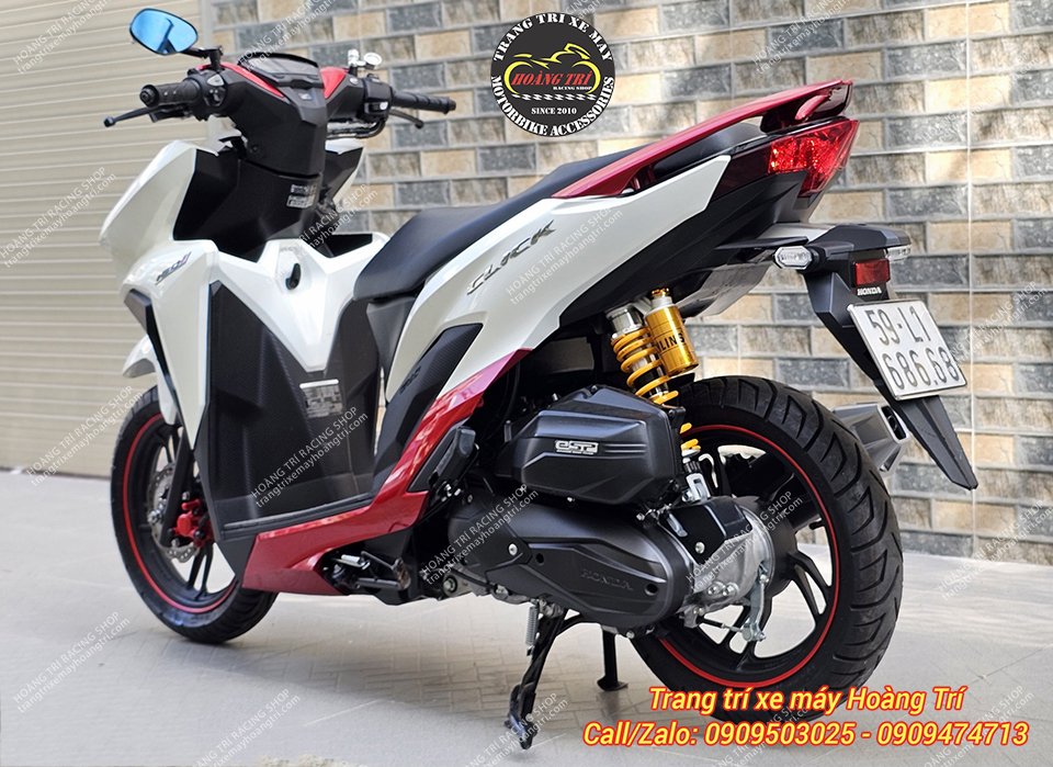 Phuộc Ohlins chính hãng HO811 màu vàng nổi bật trên xe Click Thái