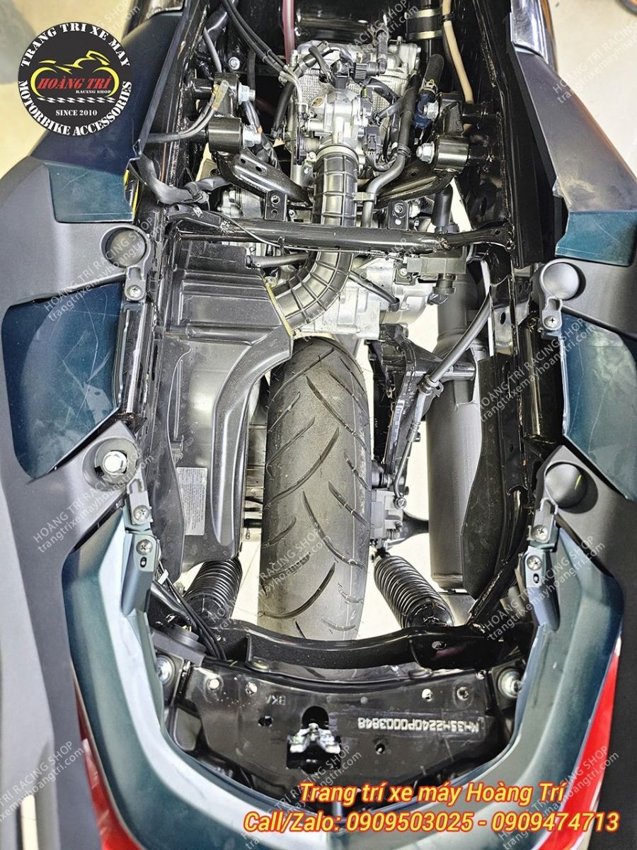 Vị trí lắp đặt các ốc vít khi trang bị baga sau tựa lưng XMAX 300