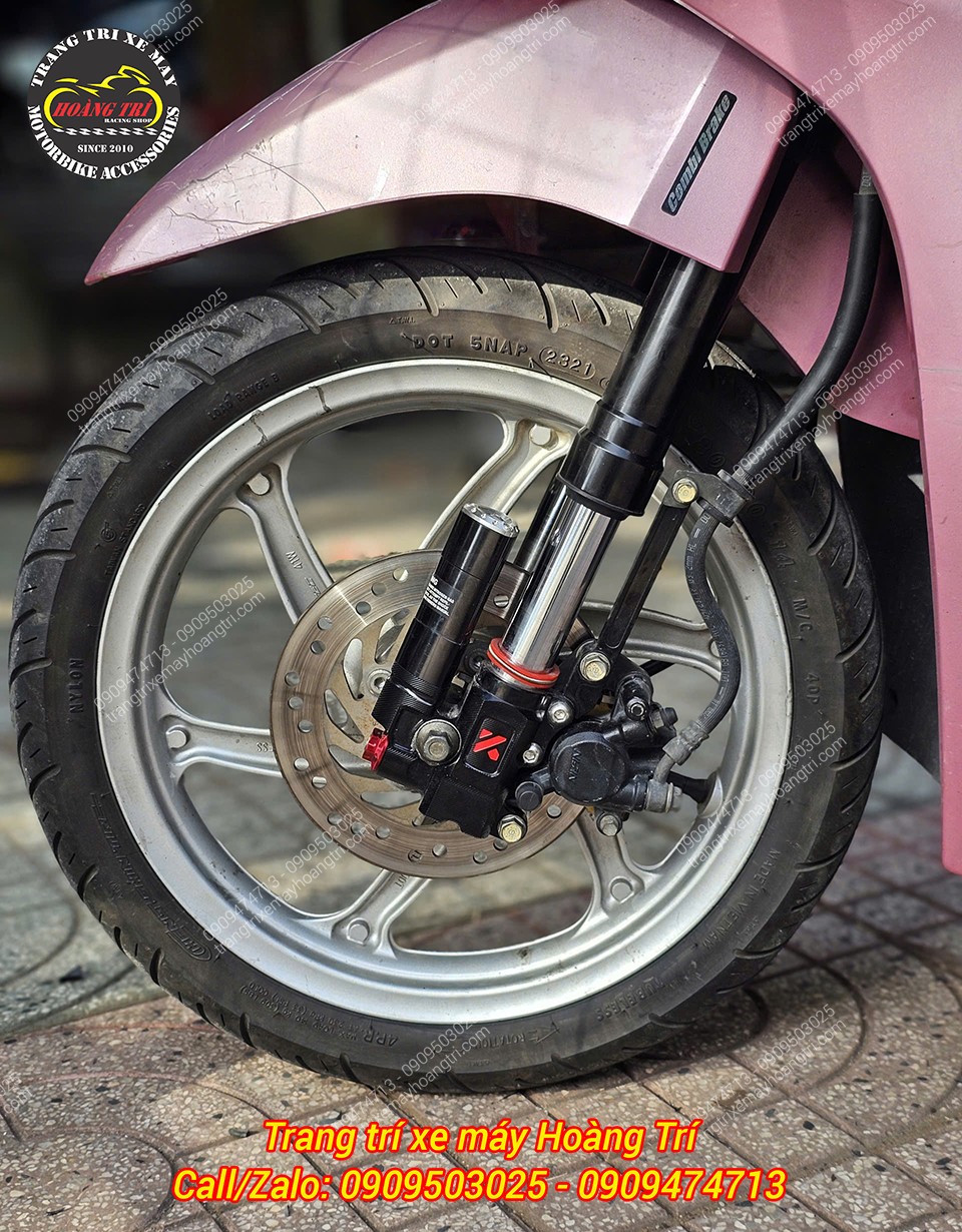 Ở dàn chân trước, chủ xe chọn nâng cấp cặp phuộc Upside Down Kingham cao cấp