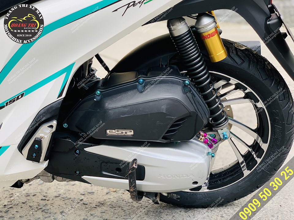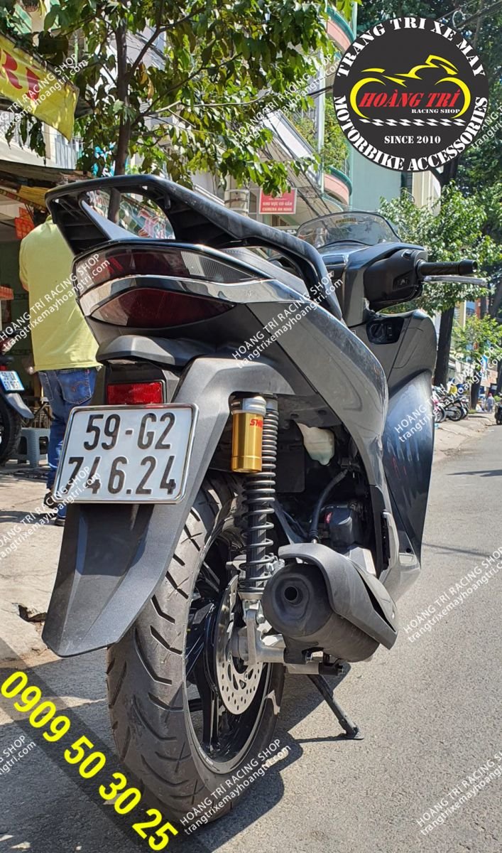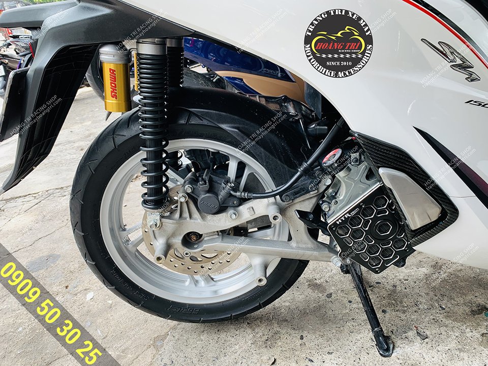 Trên hình là chiếc SH 2020 màu trắng đã thay phuộc Showa