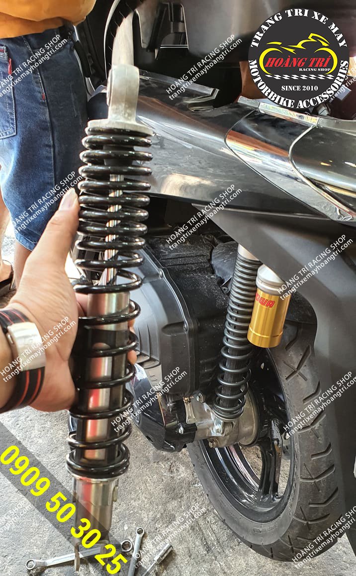 So kè phuộc zin SH 2020 (trên tay) và phuộc Showa (đã lắp cho xe)