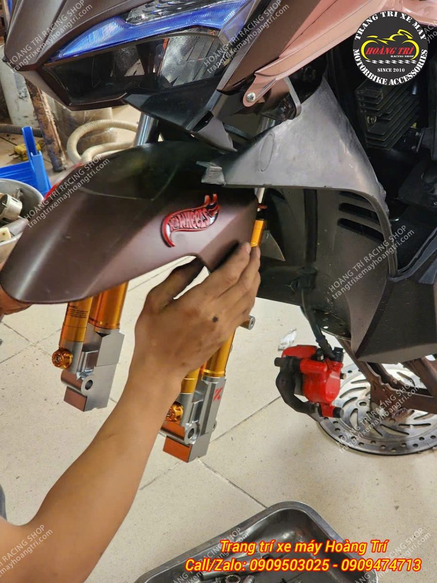 Phuộc trước Kingham đang được nhân viên nâng cấp cho xe