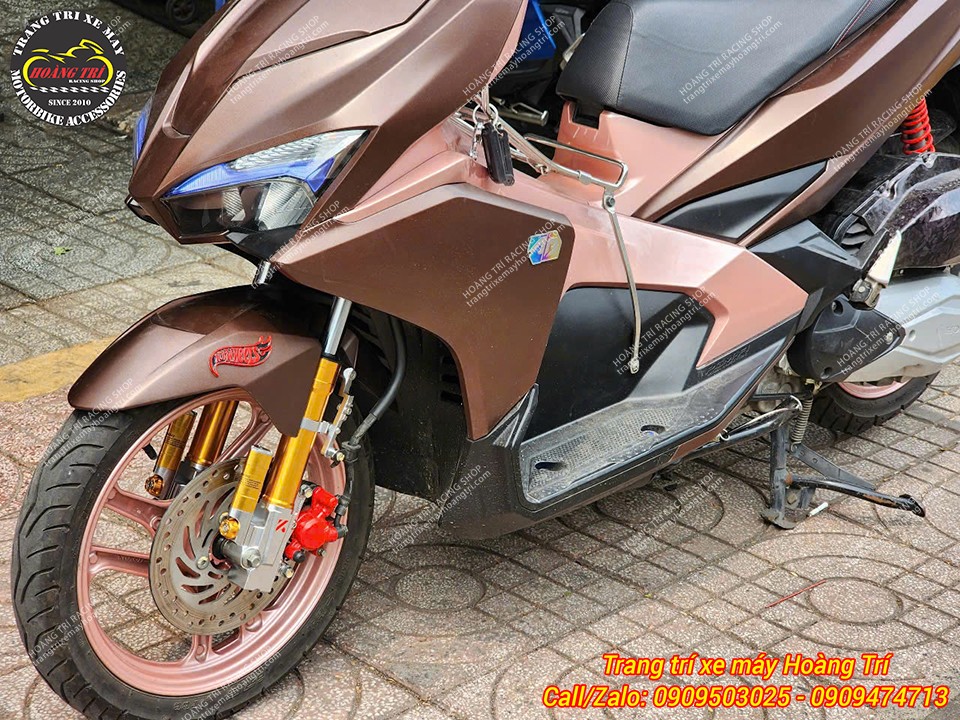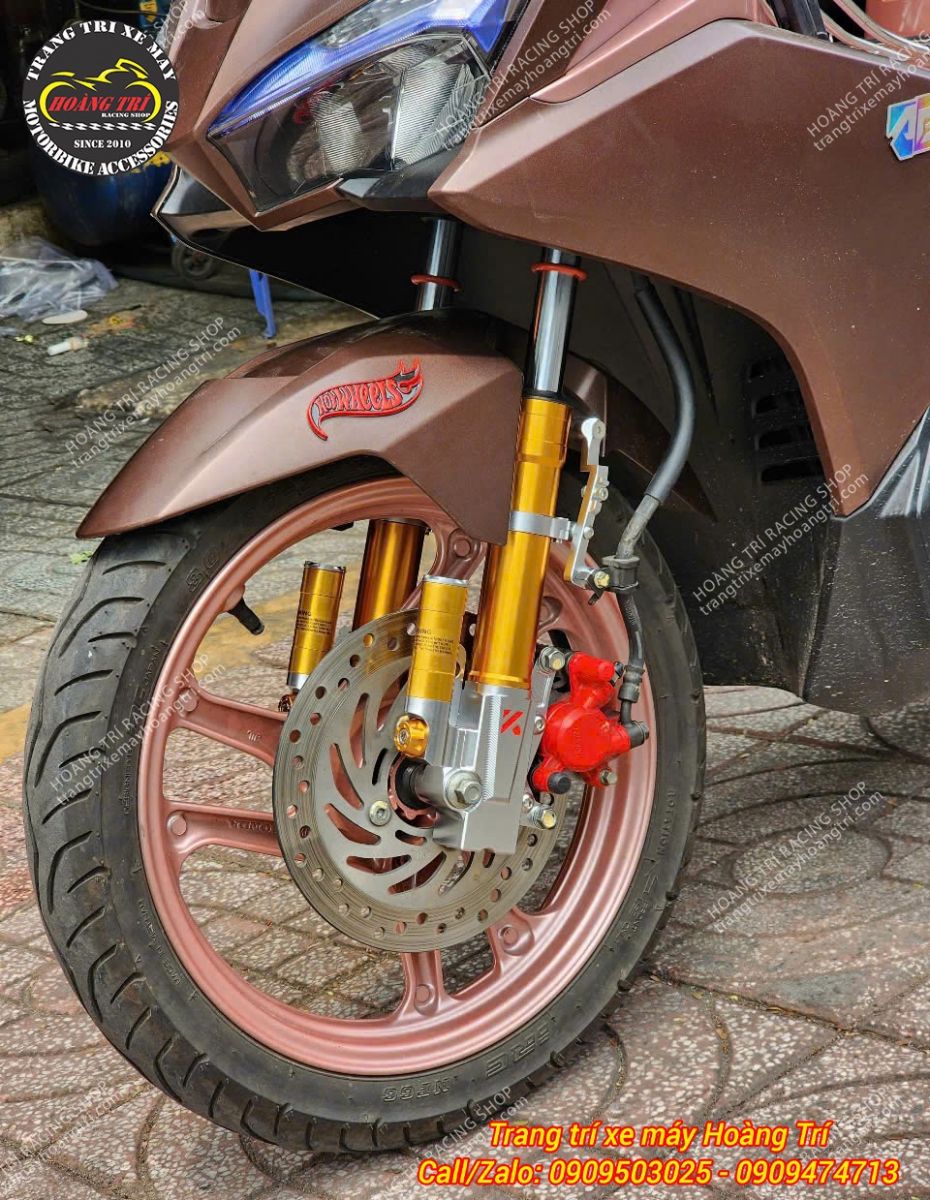 Cặp phuộc trước Kingham màu vàng gold nổi bật trên xe Airblade 2016
