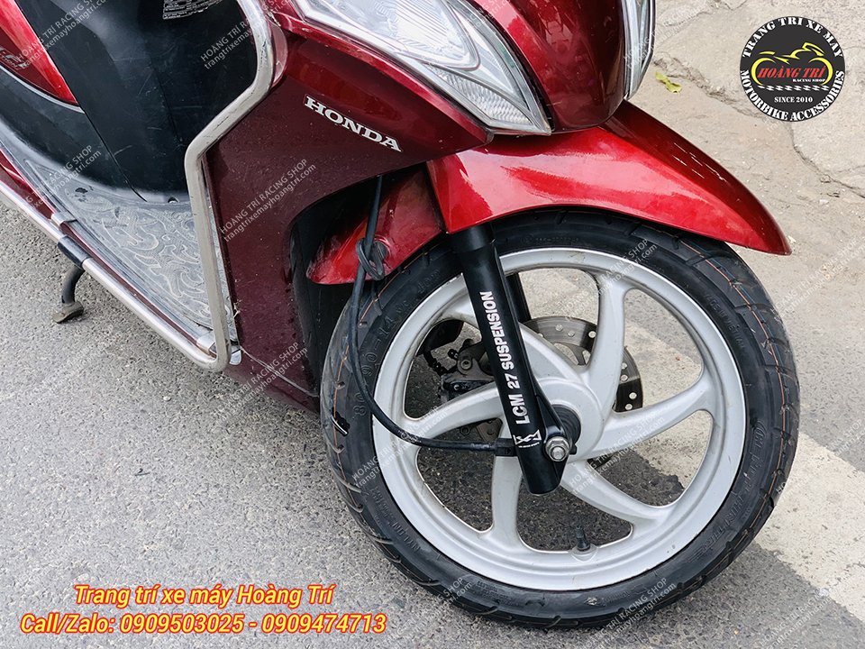 Trên phuộc có dòng chữ LCM 27 Suspension làm điểm nhấn
