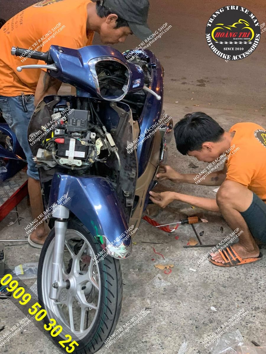 Nhân viên đang gắn khóa smartkey chính hãng Honda cho SH Mode
