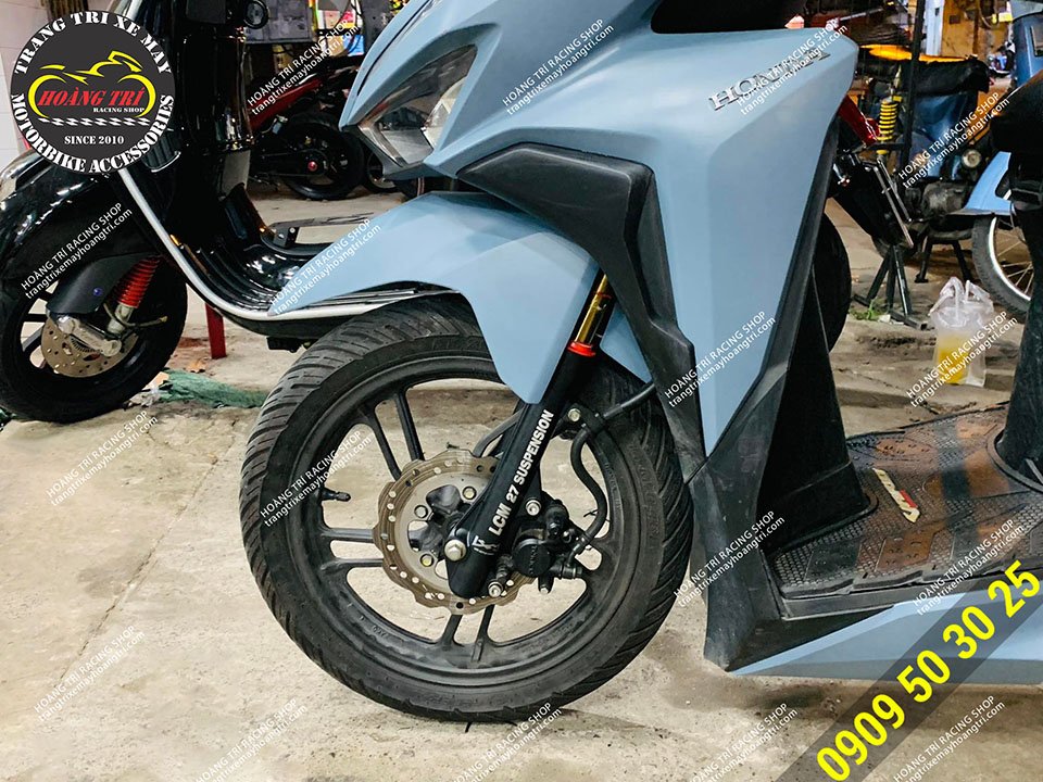 Phuộc LCM ti vàng trên chiếc Vario 2018 màu xi măng