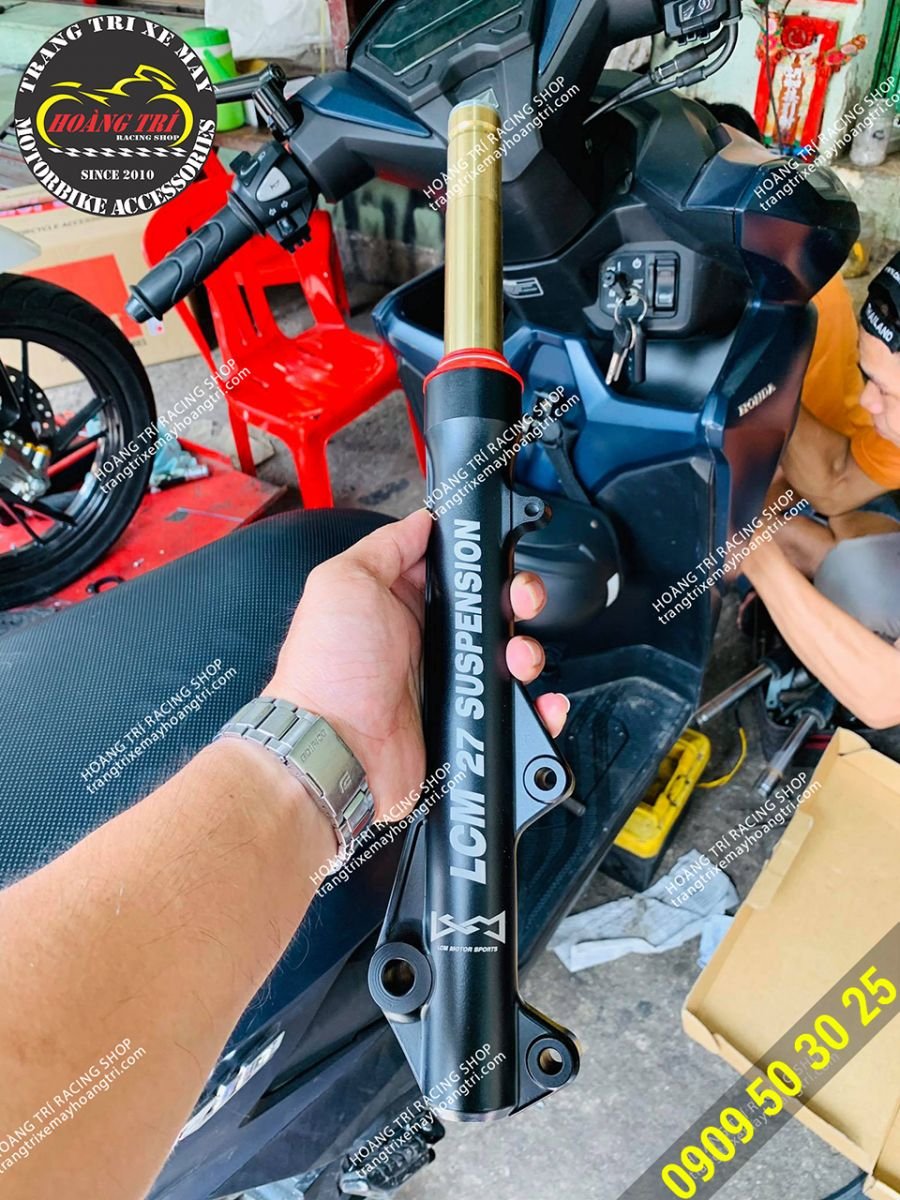 Trên tay phuộc trước LCM cho xe Vario - ti phuộc màu vàng