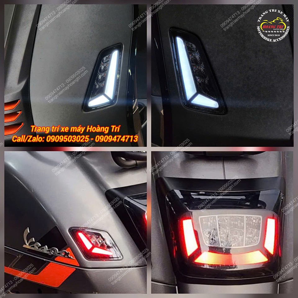 Cụm đèn hậu LED Vespa GTS thiết kế kiểu Zelioni, ánh sáng đỏ nổi bật, tăng nhận diện ban đêm