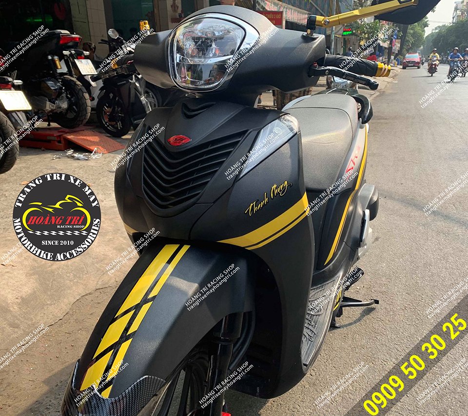 Dàn áo và tem: Dán decal đổi màu, tem trùm, hoặc tem điểm nhấn giúp xe “lột xác” nhanh. Nên chọn chất liệu bền, keo tốt để không bong tróc khi gặp mưa hoặc rửa xe.